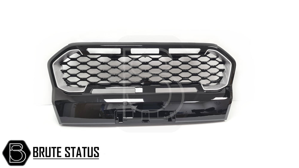 Ford Ranger 2019-2022 T8 Gloss Black & Silver Grille (Wildtrak Only)
