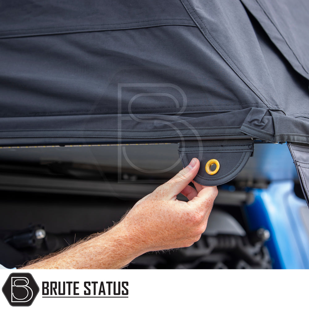 - Self locating magnets replace traditional hook and loop retainers on all windows and doors for quick and effortless operation.