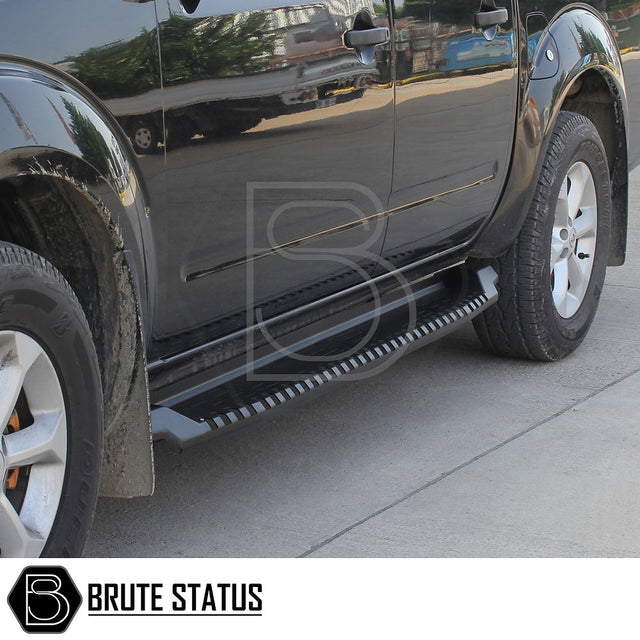 Heavy duty steel side steps finished in matt black.